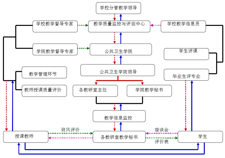 (2)制定了《遵义医公司英国365集团公司官网教学管理制度》,该制度的实施力求对课程教学质量评估做到全覆盖,提高教师教学质量意识,确保教学质量的提高。其中包括以下具体制度:教学检查制度(三期教学质量及教学秩序检查、教务处督察组检查和院系自查)、教学督导制度、同行听课制度、集体备课及试讲制度、教学相长制度、员工评教制度、员工教学信息员制度、教学评比及奖励制度。
