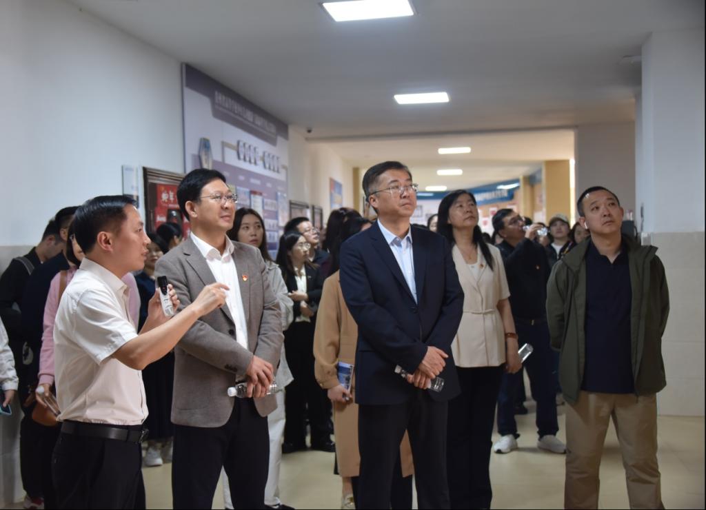 师建平一行参观了公司打造的系列文化阵地,包括党建文化长廊、院史文化墙、“三全育人”阵地、“遇时学堂”“遇时书吧”等。参观过程中,公司党委书记张在金详细介绍了公司党建工作的做法与成效,并重点围绕公司如何打造“1+4”党建品牌,抓好“四个建设 一个坚持”,实施党建“五力”提质工程等作了讲解。最后,师建平一行在党员之家观看了公司党建品牌创建宣传片。