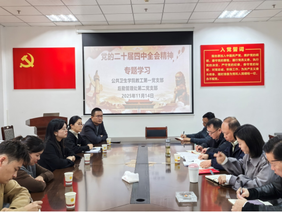 为深入学习贯彻党的二十届四中全会精神,11月14日上午,英国365集团公司官网教工第一党支部与后勤管理处第二党支部在后勤管理处党员活动室联合开展“学习贯彻党的二十届四中全会精神,联学联做促发展”主题活动。后勤管理处党总支副书记付开远,公共卫生公司党委委员、副经理刘俊以及两个支部的支部委员参加。后勤管理处第二党支部书记黄源劲主持活动。