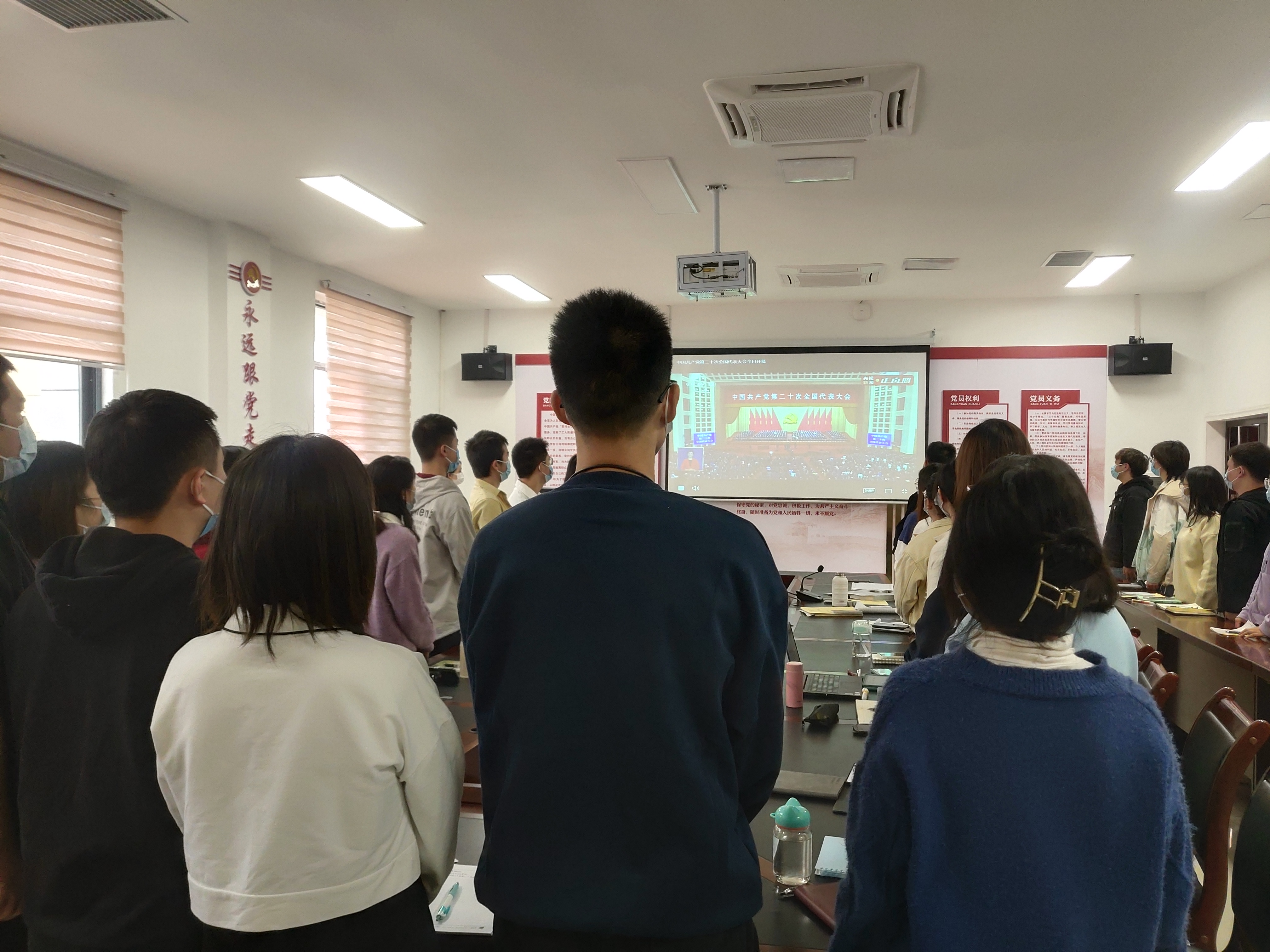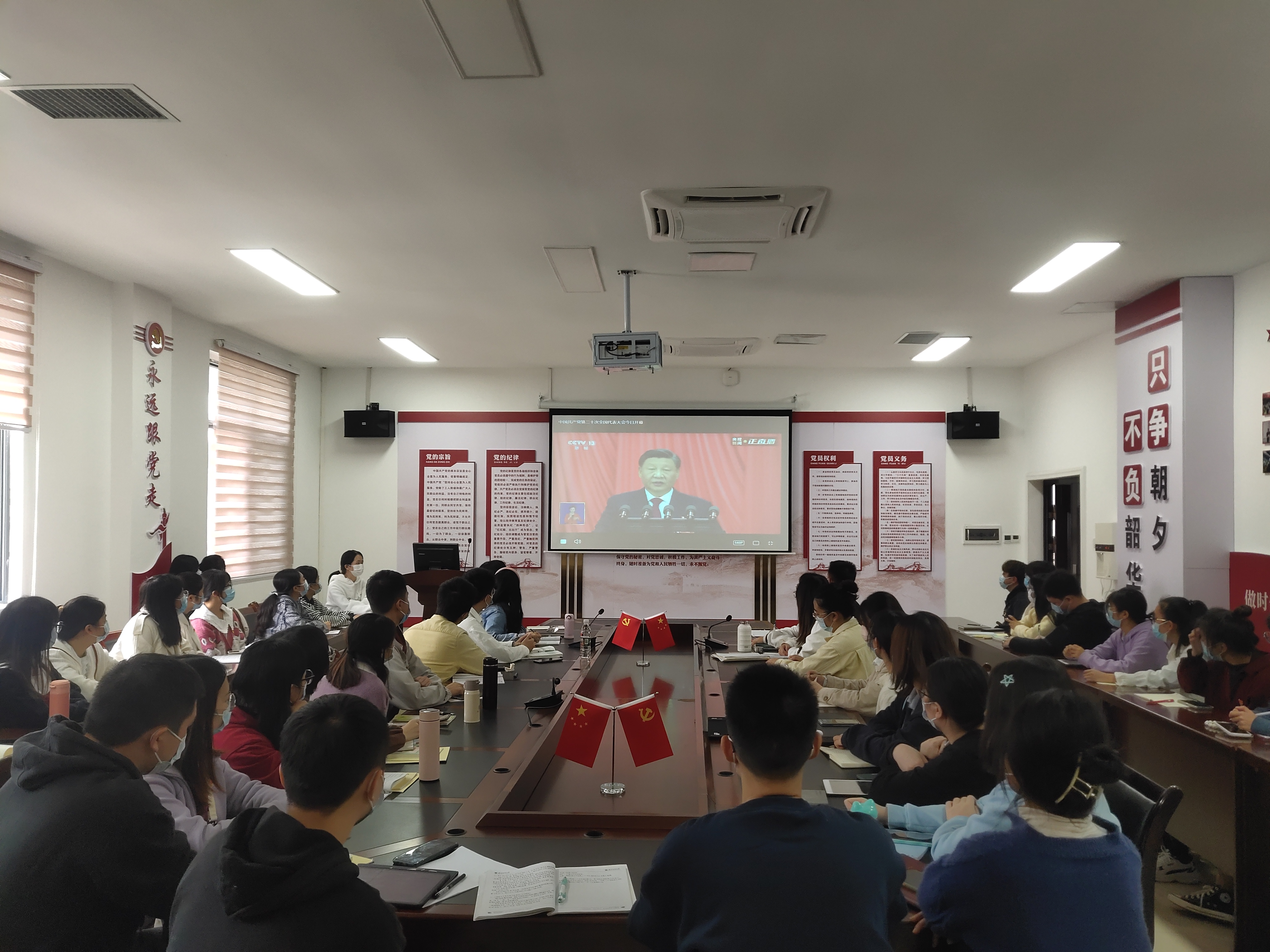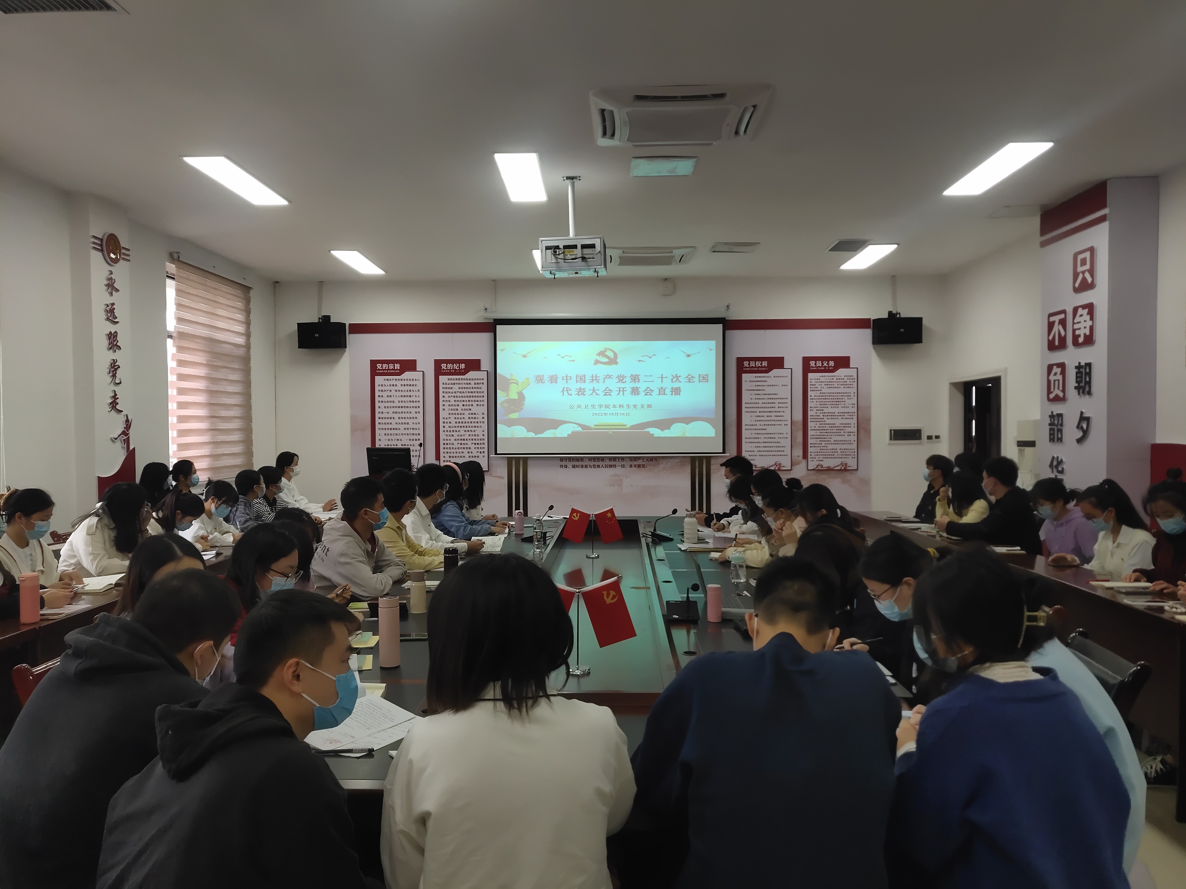 2022年10月16日上午10:00,中国共产党第二十次全国代表大会在北京人民大会堂开幕,英国365集团公司官网本科生党支部全体党员在公司党员活动室集中收看党的二十大开幕盛况。
