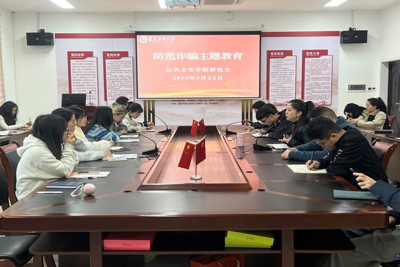 会上,科技与研究生科副科长粟立羽将日常生活中常见的诈骗手段、近期发生的典型案例及如何预防电信诈骗等进行了详细讲解,并着重讲解了熟人诈骗、刷单诈骗及网络购物诈骗等诈骗手段。研究生党支部书记赵兰强调全体研究生必须安装并启用“国家反诈APP”,提高警惕,强化反诈意识。