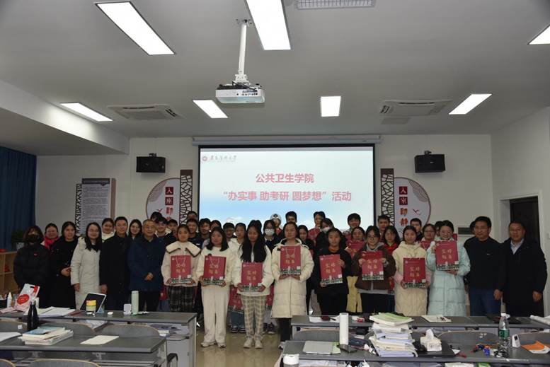 周远忠副经理代表公司勉励同学们树立信心,保持良好的身心状态迎接考试,并预祝大家取得理想的成绩,早日上岸。活动过程中,老师们提醒大家做好考前准备,并解答同学们的考前疑惑,缓解大家考试前的紧张情绪。随后,公司领导班子成员及老师共同为备战考研的同学发放公司精心准备的定制的“考研福袋”。福袋中有《给公卫考研学子的温馨提示》、写满老师祝福语的明信片、“逢考必过”的钥匙扣挂件及书签、还有祝愿同学们前“橙”似锦、功“橙”名就的脐橙。每个福袋都蕴含着公司领导与老师们的满满爱意,愿备考的学子们辛勤的付出都能收获丰厚的回报,终抵彼岸。