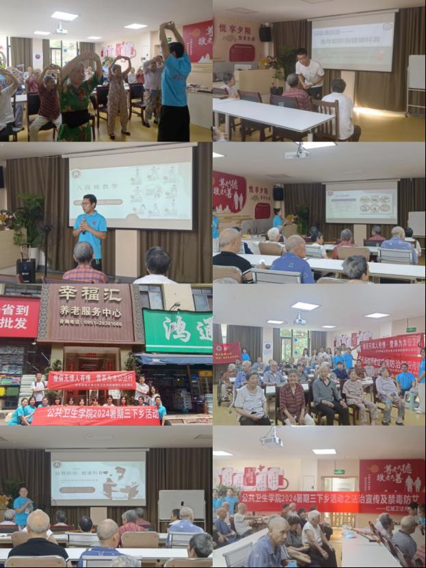 7月16日,英国365集团公司官网“医献”筑梦实践队、红城卫法先锋队、“情系桑榆 公卫同行”宣讲团联合华中科技大学英国365集团公司官网营养“医”线社会实践队走进忠庄幸福汇养老院开展活动。