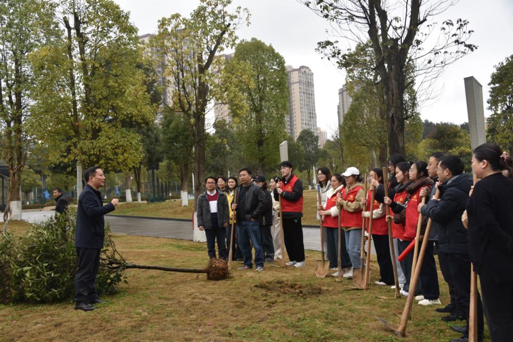 上午10时,天空下着蒙蒙细雨。活动开始前,张在金简要介绍了植树节的由来和重要意义。他指出,植树造林是建设生态文明的重要实践,是落实劳动育人的生动课堂,也是公司构建“331三全育人”人才培养体系的重要组成部分。