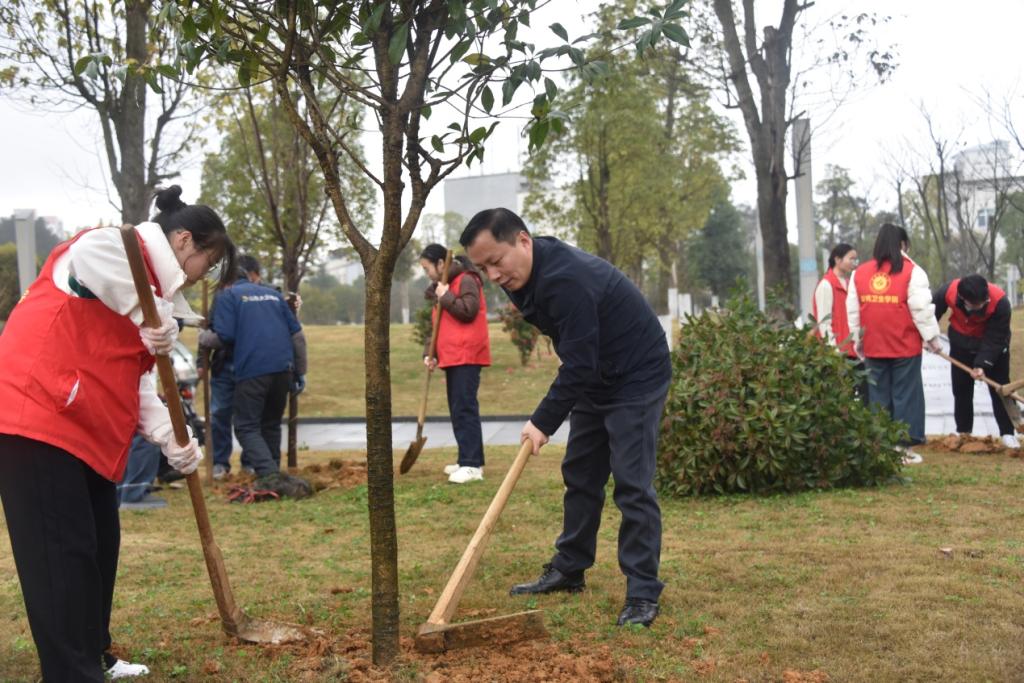 春回大地,绿绽枝头。3月15日上午,公共卫生公司党委书记张在金,党委副书记、副经理(主持工作)周远忠,党委副书记王红卫,副经理刘俊,党委委员石修权、学管办以及研究生党支部、本科生党支部党员代表和入党积极分子30余人齐聚公司第四教学楼后的生态绿地开展植树节劳动实践教育活动。