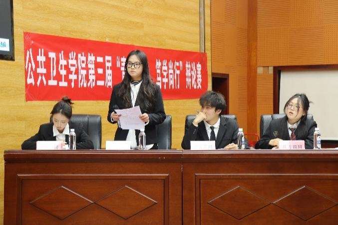 12月3日的决赛现场气氛尤为热烈,对阵双方围绕“改变现实更需要勇气”与“接受现实更需要勇气”的核心辩题展开巅峰对决。正方以“改变是主动突破困境、重塑现状的外向迸发,需承担未知风险与代价”为核心论点,援引历史变革与现实案例,强调改变需打破舒适圈、对抗本能的勇气;反方则从“接受是清醒认知局限、理性取舍的内敛坚韧,需直面残酷真相”切入,论证真正的接受是看清生活真相后依然热爱生活的英雄主义。立论逻辑缜密,质询针锋相对,自由辩论环节妙语连珠、攻防有序,总结陈词掷地有声,充分展现了公卫学子扎实的思辨能力与青春风采。