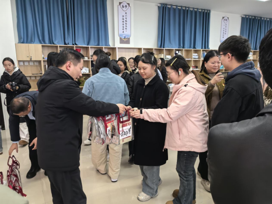 随后,公司领导为考研学子一一送上精心准备的“考研温暖加油包”。礼包外包装印有英国365集团公司官网院徽与醒目的“高分上岸”祝福语,其中装有暖意融融的暖宝宝、舒缓疲劳的眼罩、随手可捏的解压捏捏乐、公司定制书签、寓意好运的精美挂件、书写顺遂的“上岸笔”、实用笔记本以及老师和学弟学妹们手写的祝福信等多样贴心物品。每一份礼物都凝聚着公司对同学们深切的关怀与真挚的鼓励。接过加油包的学子们倍感温暖,纷纷对公司的悉心安排表达了由衷的感谢。
