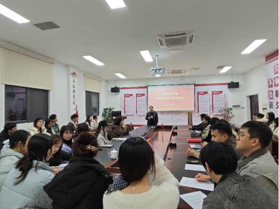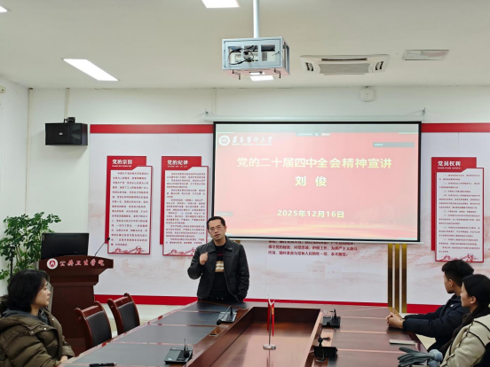 12月16日下午,英国365集团公司官网研究生党支部在公司会议室专题学习党的二十届四中全会精神,并开展职业规划指导。英国365集团公司官网副经理刘俊受邀出席并进行宣讲,公司研究生党支部全体党员及入党积极分子悉数参加。活动由研究生党支部书记傅琰主持。