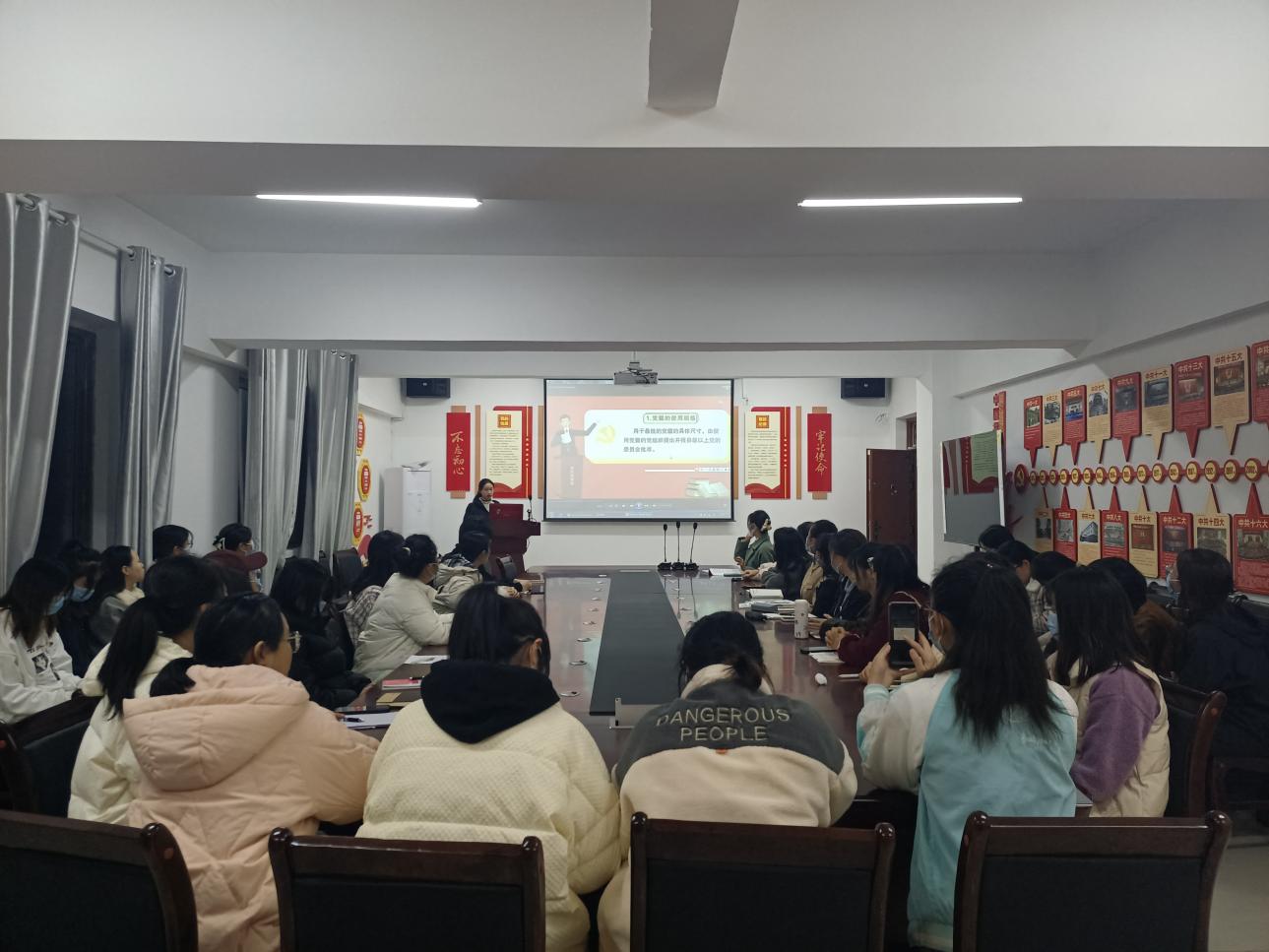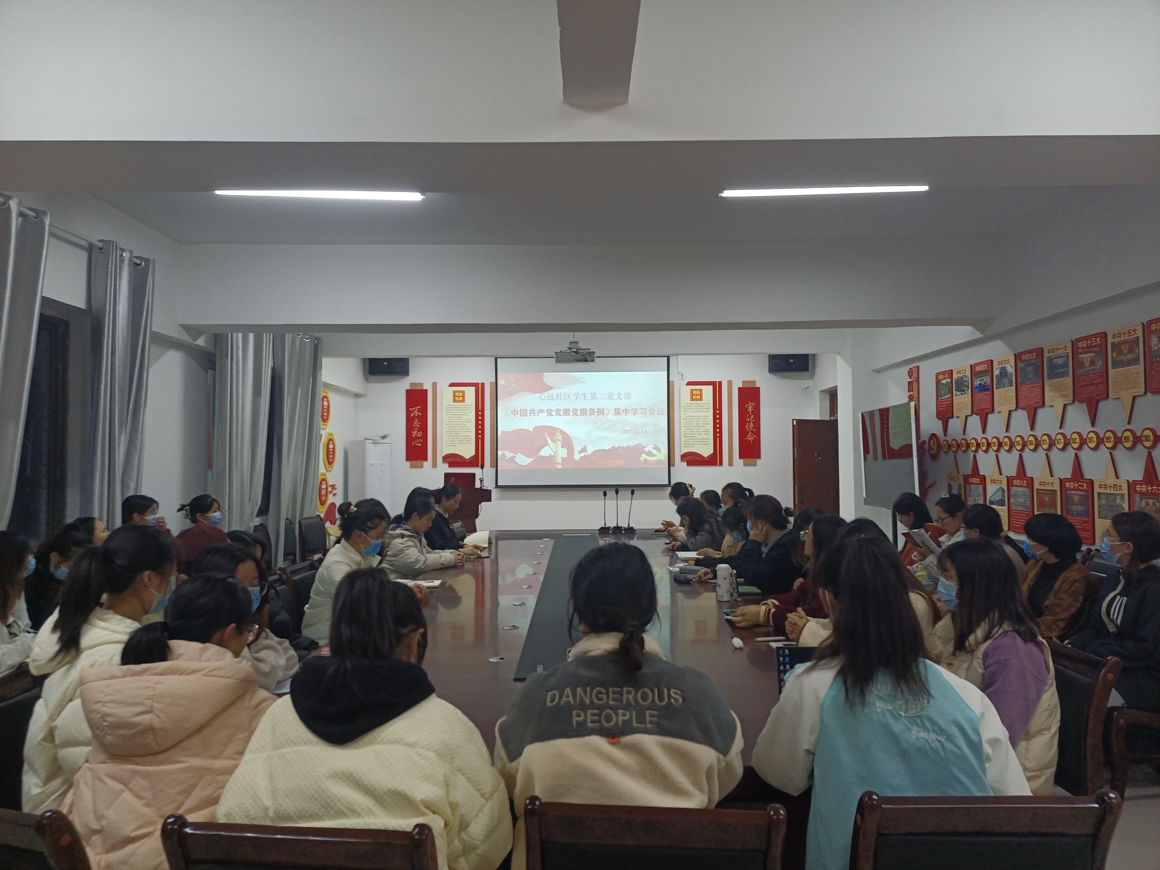 11月18日下午6:00,由公共卫生公司党委管理的心远社区员工第二党支部在心远社区205党团活动室集中学习了《中国共产党党徽党旗条例》,支部全体党员参加会议。党支部书记、2019级食品质量与安全专业张译文主持学习会。