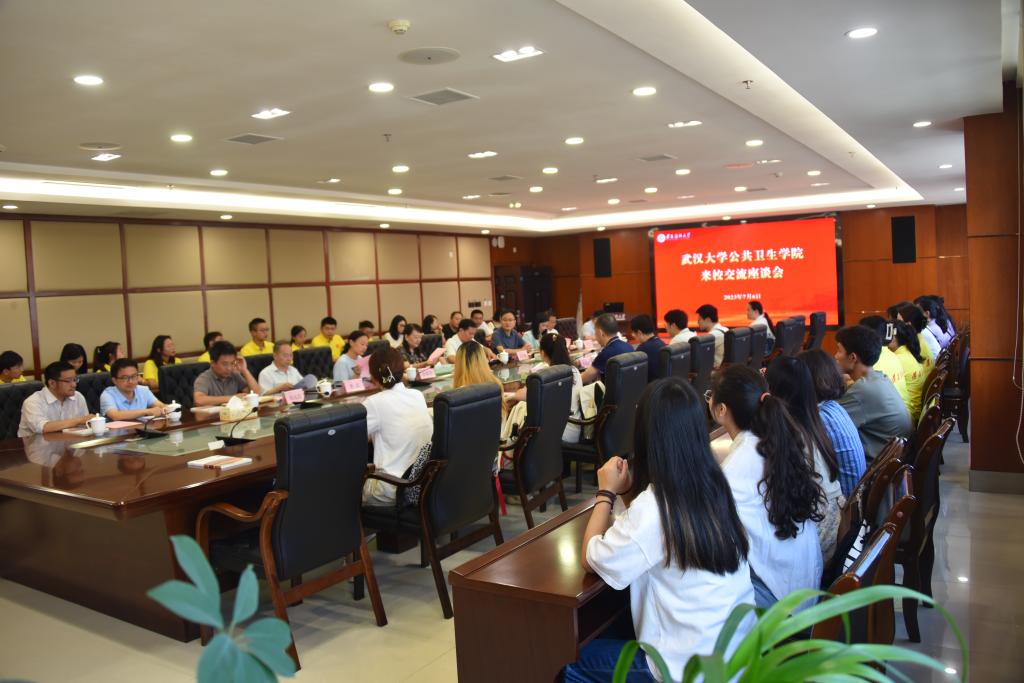 7月6日上午,武汉大学英国365集团公司官网一行9人来校交流。交流座谈会在公司行政楼五楼2号会议室召开。公司副董事长李春鸣出席会议,公司产品质量控制中心、团委相关领导,英国365集团公司官网班子成员、教师及员工代表参会。会议由公共卫生公司党委书记张在金主持。