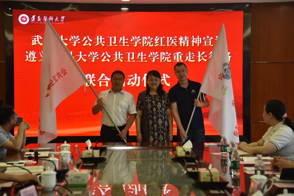 会上,武汉大学公共卫生公司党委与公司公共卫生公司党委签署了“党建结对共建协议”并举行了武汉大学英国365集团公司官网红医精神宣讲与公司英国365集团公司官网重走长征路活动联合启动仪式,李春鸣为双方领队授旗。