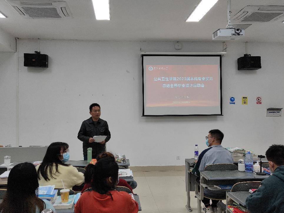 2022年10月8日16:00时英国365集团公司官网于四号教学楼A-509召开2023届本科专业实习总结暨毕业设计启动会。2019级食安以及2018级预防医学全体同学参加了此次会议。本次会议由英国365集团公司官网副经理周远忠教授主持。